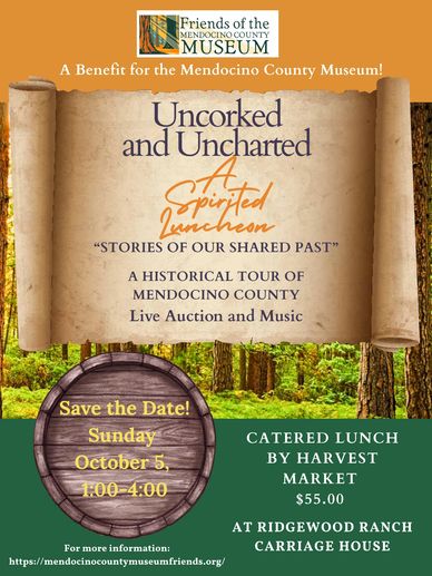 Tour of Mendocino Coutny through historical tales, delicious catered luncheon, drinks, auction.